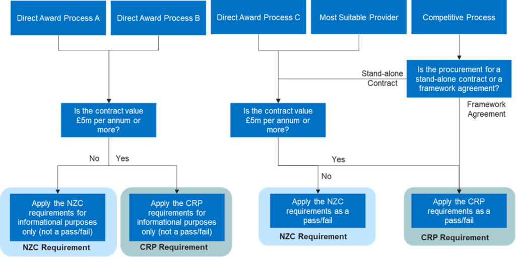 Applying the CRP and NZC Requirements under current procurement regimes in England