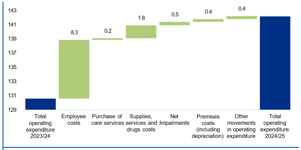 Almost 74% (£8.3 billion) of the increase in operating expenditure related to employee costs, which is largely driven by the pay awards for 2024/25. Recruitment and retention challenges and industrial action have also driven up staff costs.