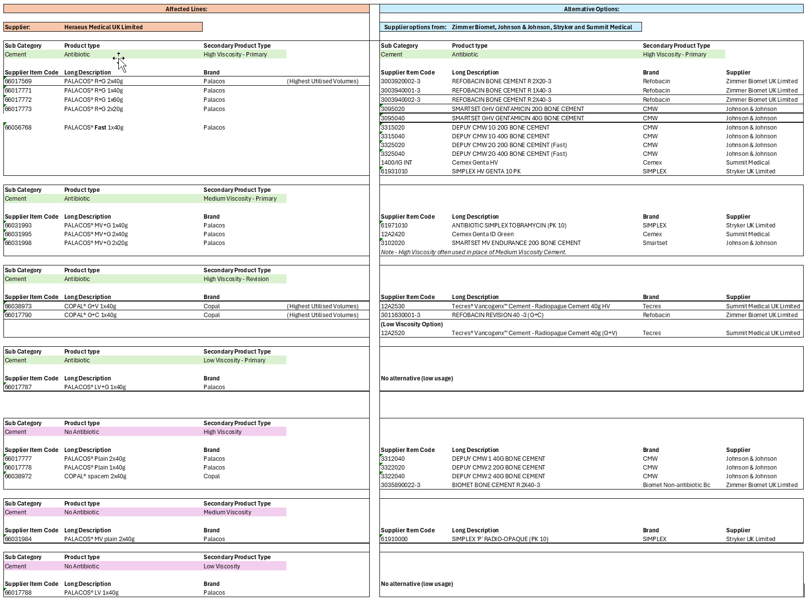 Further information on supply and alternatives can be found on NHS Supply Chain’s dedicated webpage, which will be regularly updated: Supply Issues Heraeus Medical Bone Cement Products » NHS Supply Chain