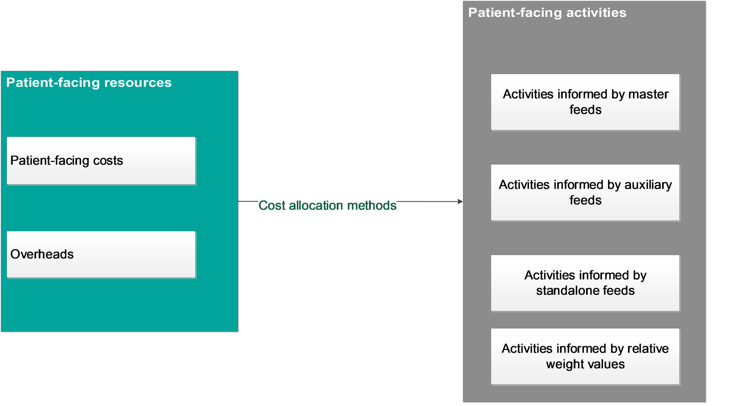 - The patient-level activity feeds specified above do not cover all patient activities involved in providing healthcare services or overheads.