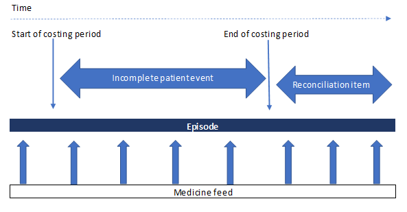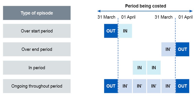 - Scope: all admitted patient episodes (all sectors) within the costing period, including all patients discharged in the costing period and patients still in bed at midnight on the last day of the costing period. This includes regular day or night admissions.