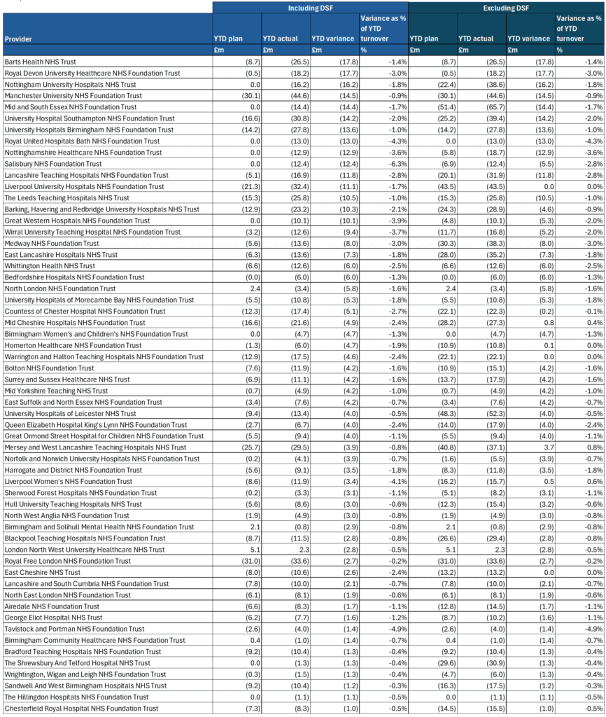 Annex 2: Providers with a YTD overspend worse than £1m at month 6
