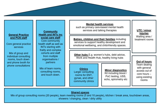 - a clear articulation of proposed neighbourhood health estate, listing existing facilities and the upgrade and new build schemes proposed.