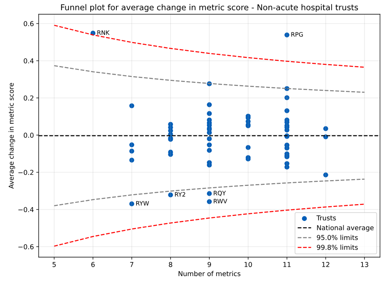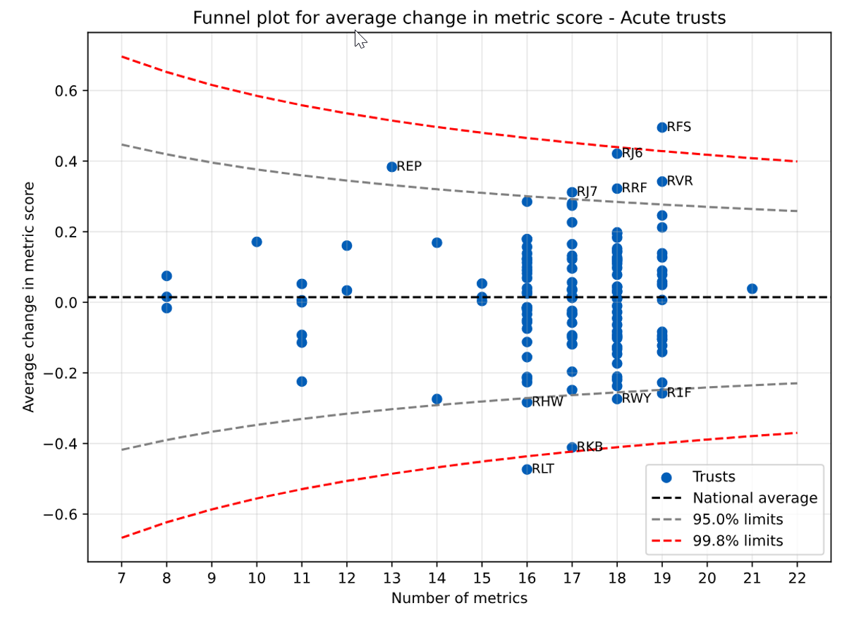 Annex A – Acute trust funnel plot for mean change in metric score
