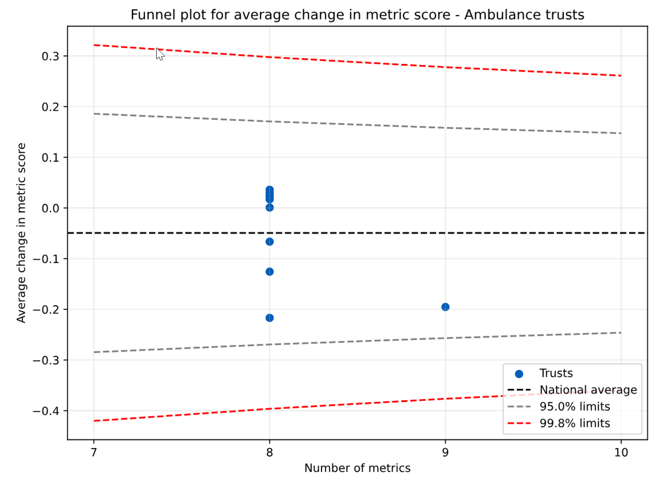 Annex C – Ambulance trust funnel plot for mean change in metric score