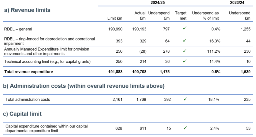 NHS England is required to manage total NHS spending within a fixed revenue limit. The total General RDEL limit for 2024/25 was £190,990 million.