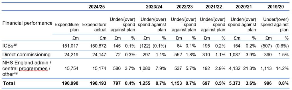 As part of the merger of NHS England, NHS Digital and Health Education England, NHS England successfully delivered a 35% reduction in its organisational size, resulting in £490 million of savings. In addition, through robust financial management and further efficiencies in central NHS England costs, an additional £306 million in savings was achieved. In total, £500 million of these savings were reinvested into frontline services, directly supporting patient care and system delivery. Across systems, the total efficiency in 2024/25 totalled £8.7 billion.