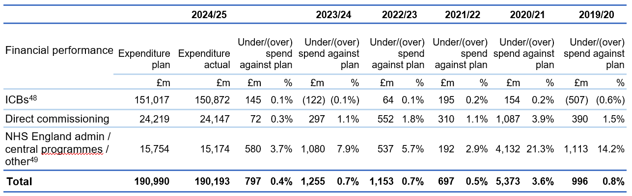 NHS England is required to manage total NHS spending within a fixed revenue limit. The total General RDEL limit for 2024/25 was £190,990 million.