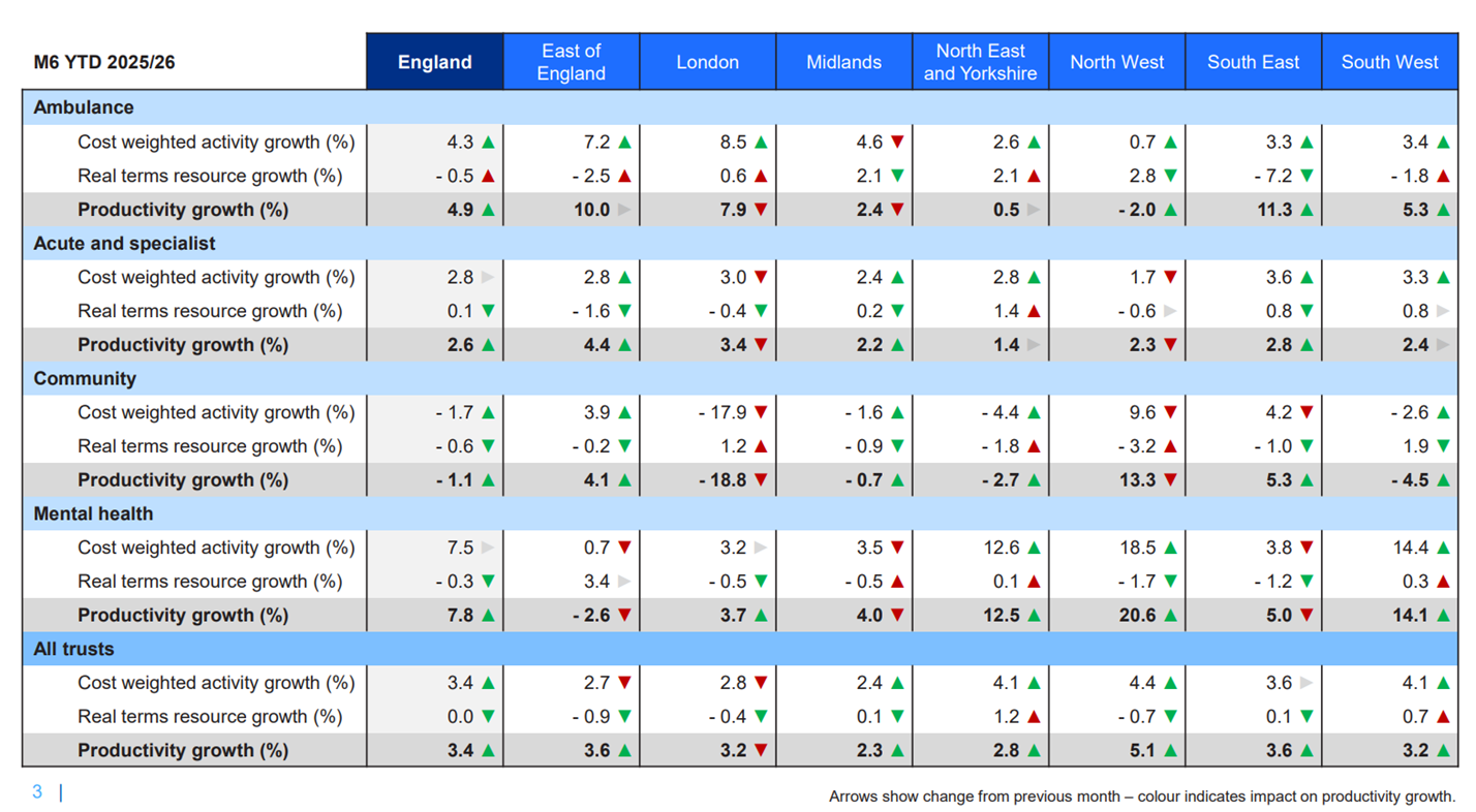 11. Latest data comparing H1 2025/26 vs H1 2024/25 shows that the NHS is delivering 2.6% productivity growth in the acute sector, and up to 3.4% overall when including non-acute providers, albeit the data quality from non-acute services means we have less confidence in the reliability of that estimate compared to the acute sector. Annex B sets out the estimates.