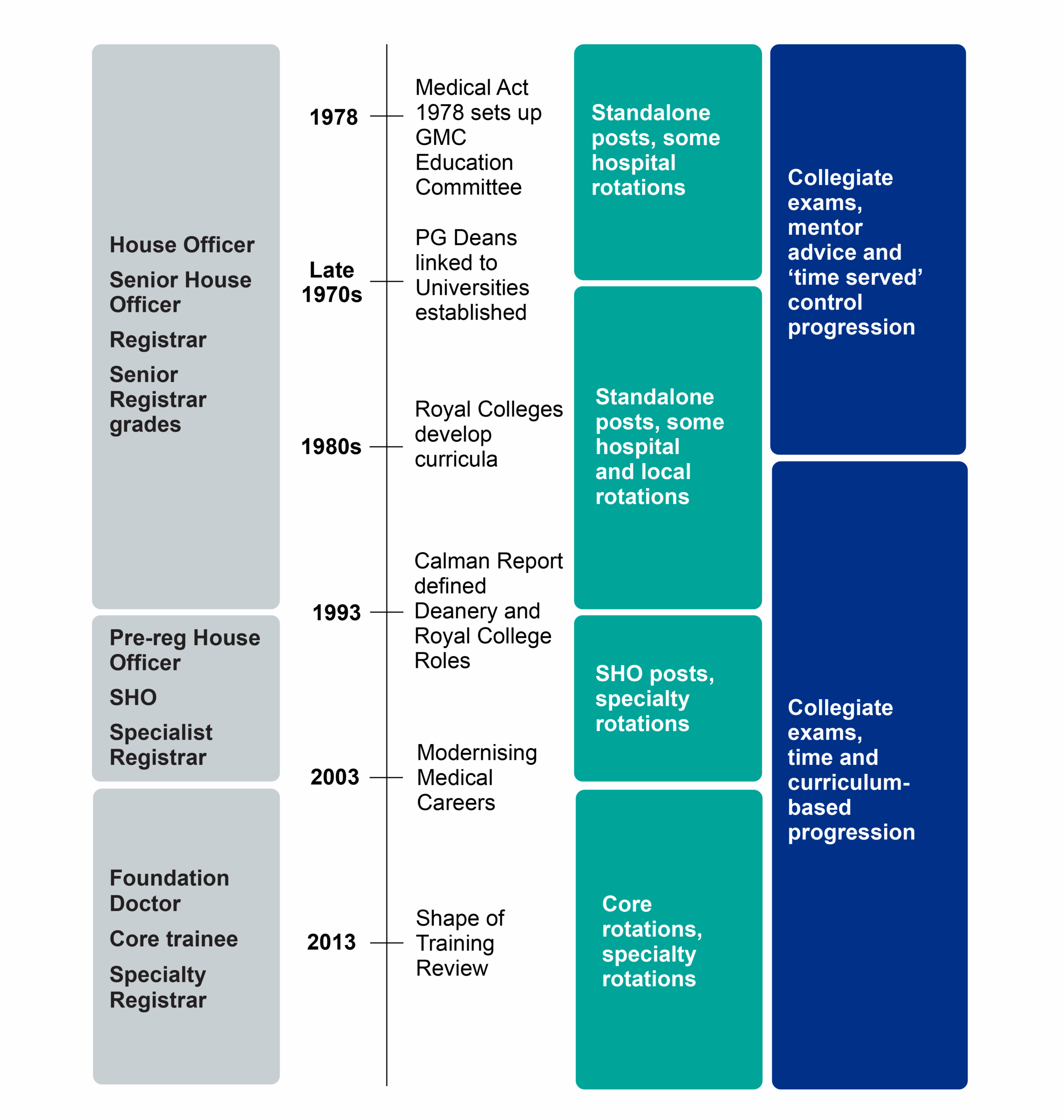 Figure 1: History of postgraduate medical training, 1970s to 2013