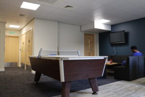 This space offers a large communal area with a pool table, kitchen facilities, workstations, and a TV, alongside two lockable single-bed rooms for short power naps. These facilities complement existing sleep pods and are part of a broader sleep policy that includes bookable rooms for rest after night shifts, ensuring doctors can recover safely before travelling home.