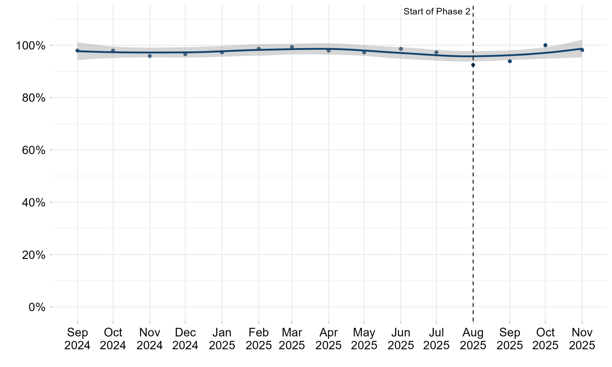 - One phase 2 site submitted data between Sep-24 and Jul-25; this early data was therefore excluded.