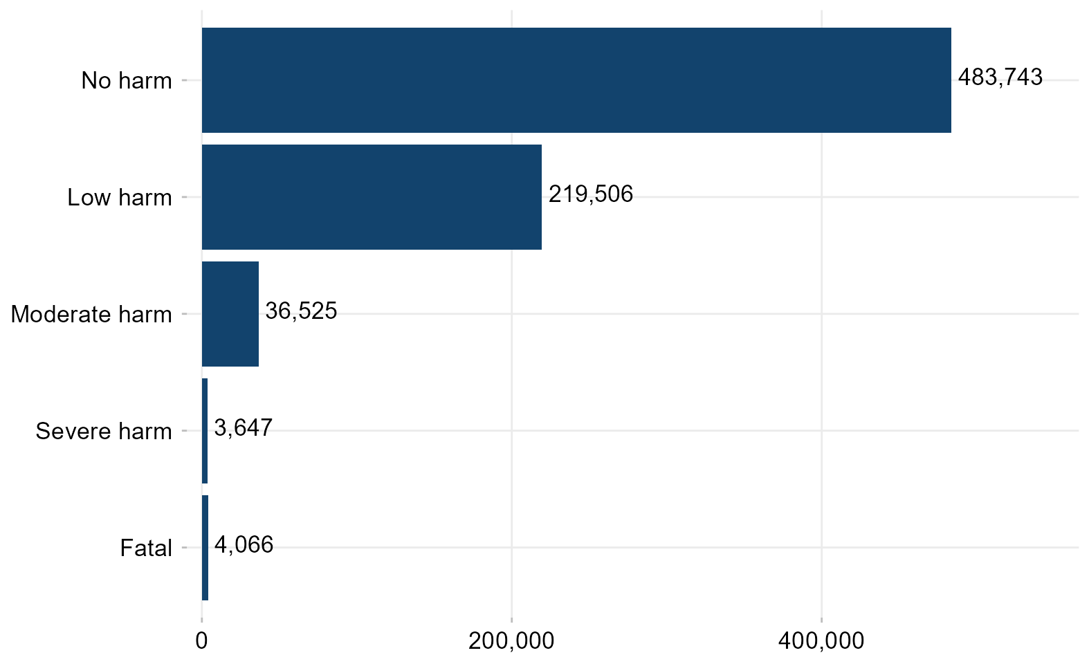 Figure 1: Count of patient safety incidents by maximum physical harm