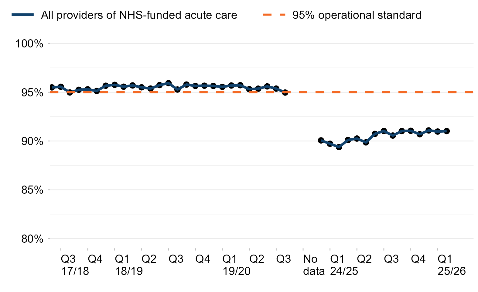 | All providers of NHS-funded acute care | 91.1% | 91.0% | 91.0% |